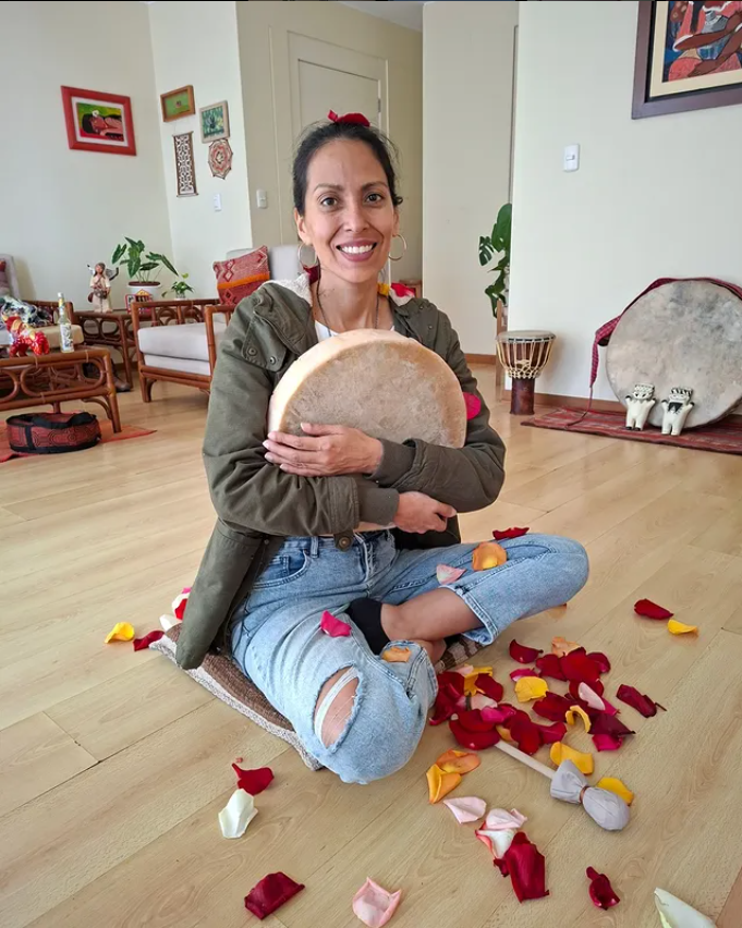 Mi llamado sonoro nació en 2004: instruida en Tambores Ceremoniales en el Centro Terra Mística junto a Marcus Fraga y Tatiana Meinkaiká, descubrí cómo la vibración del tambor podía abrazar cuerpo, mente y espíritu.