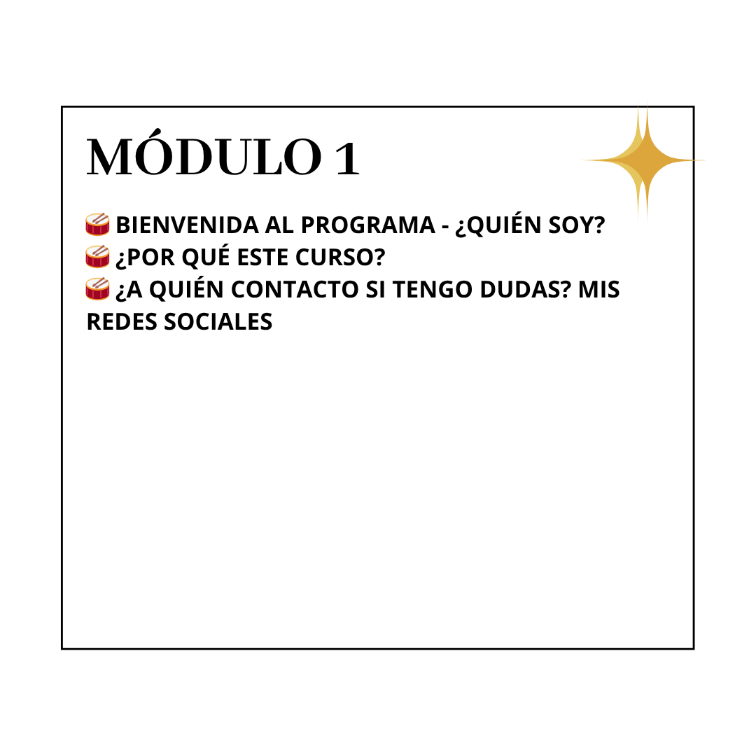 Realizarás activaciones rítmicas y ejercicios guiados que anclarán tu energía, convirtiendo cada ritmo de tambor en un canal de luz que disuelve bloqueos, mientras compartes tus avances y recibes retroalimentación constante en nuestro grupo privado.