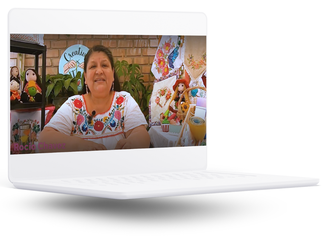 ¡Hola! Soy Rocío Chávez, profesora de manualidades mixtas con más de 20 años de experiencia. He enseñado bordado, crochet y flores en tela, y fundé el exitoso emprendimiento «Manos Creativas Jair».